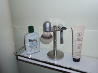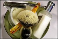 Dagens barbering indeholdt et lille personligt tema, benævnt "Min første", da så godt som alt gearet var min første af den type :o) Det eneste der ikke er min første, er aftershaven, men det er min første aftershave som stadig produceres, og nr. 3 eller 4 i den kronologiske rækkefølge.