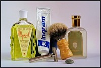 Software Geo F. Trumper Sandalwood skin food (som preshave). Nanny's Silly Soap Lavender Barbersæbe. Truefitt and Hill Ultimate comfort aftershave balm.