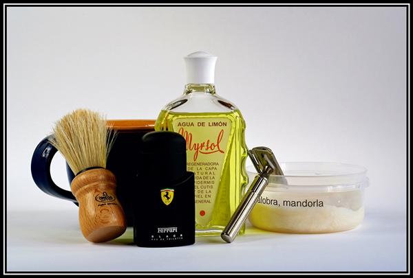 Bukhave skål Semogue Owners Club, kirsebærtræ Gillette Fat Handled Tech med Derby Extra (69) Valobra, menthol Floïd The Genuine After Shave Ferrari Passion EDT