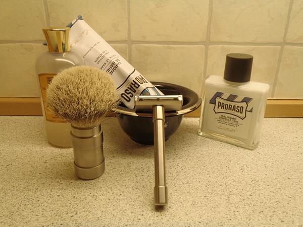 Hardware Mühle sæbeskål. Pils Rasur DE, med Derby Extra (1). Pils Rasur Barberkost, Silver Tip badger.