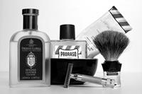 Software Geo F. Trumper Sandalwood Skin Food (som Pre Shave). Proraso Barbersæbe - grøn te og havre-ekstrakt. Proraso Aftershave - Liquid cream.