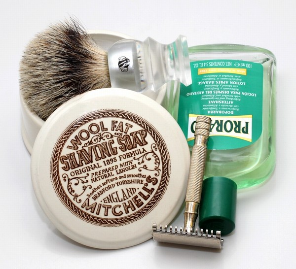 Proraso Cutting Edge Cleansing Glycerin Bar Proraso Greeen Tea and Aloe Pre-Shave Brit. Gillette NEW m. Derby Extra (1) B&B Essential Mitchell's Wool Fat Proraso Aftershave Thayer's Witch Hazel