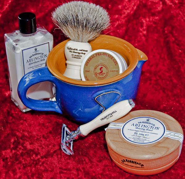 Taylor of Old Bond Street Herbal pre-shave gel D.R. Harris Arlington Shaving Soap