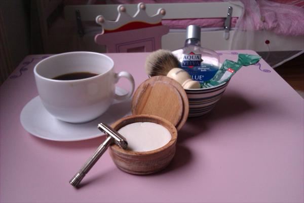 Her stod den på Mitcehlls sæbe og mit nye legetøj Gillette Super Speed. Er en lille smule skuffet over letheden og at den ikke skraber tættere men er måske et spørgsmål om øvelse og tilvænning.